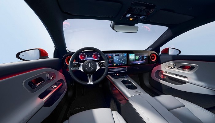 外观方面,新车前脸采用封闭式面板并装饰有矩阵式星徽标识,配合贯穿式LED灯带与内含星徽元素的头灯。车尾采用流行的贯穿式尾灯,灯腔内同样呈现星徽图案。其长宽高分别为4763/1836/1471毫米,轴距达到2830毫米,相比海外版增加40毫米。新车提供五种颜色选择,高配车型配备AMG风格组件。